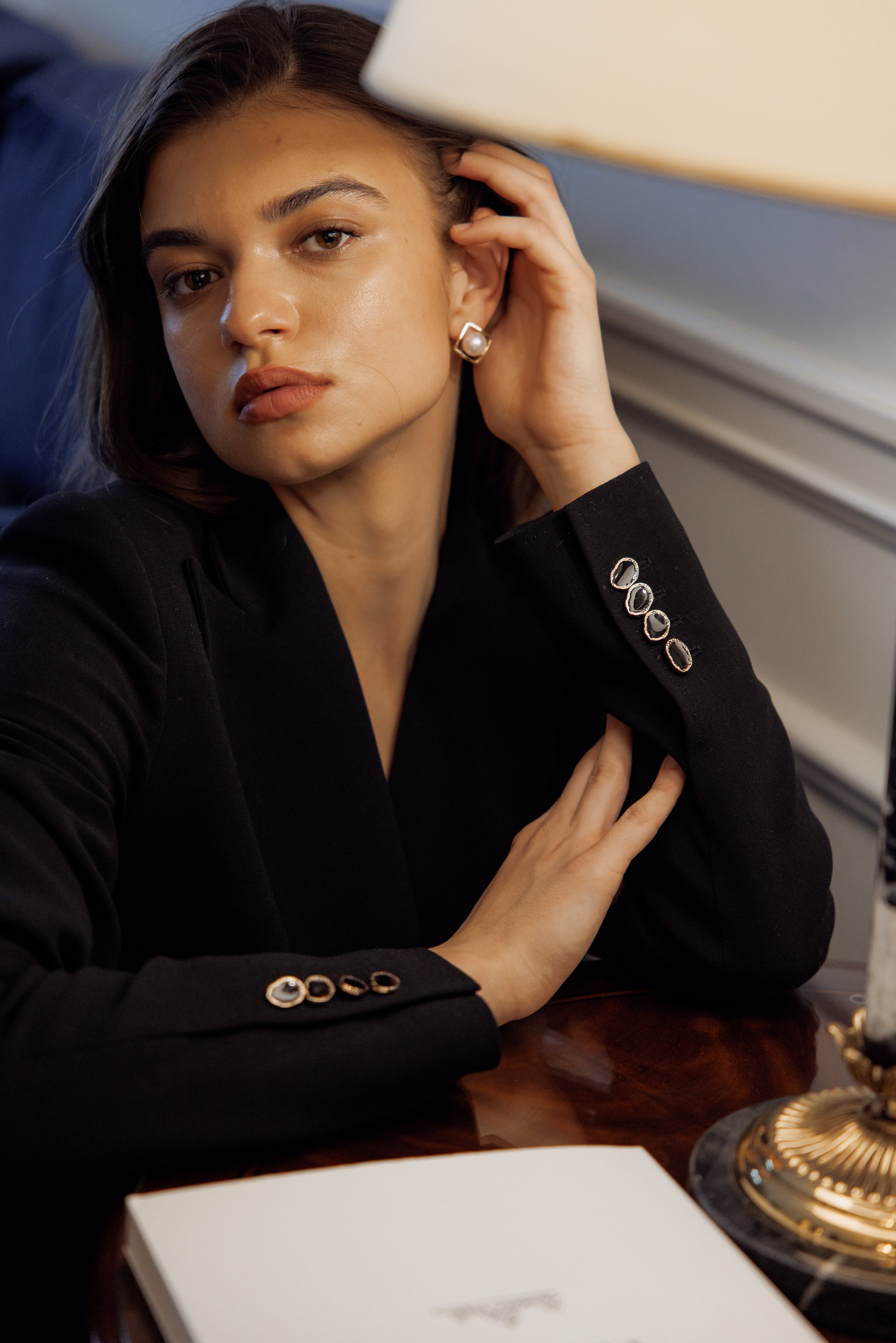 Step into a world of unparalleled style with our elegant women’s four-piece suit, crafted from premium Italian fabric “REDA.” Every detail of this ensemble has been meticulously considered: the lining in luxurious printed silk adds a lavish touch, while the contrasting silk back of the waistcoat completes the look, transforming it into a true work of art.